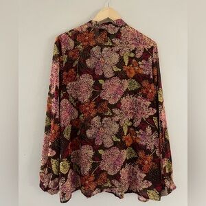 Susan Graver brand size large burgundy with multicolor floral print sheer long sleeve blouse