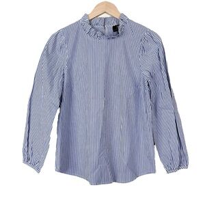 J. Crew Long Sleeve Ruffle Neck Top In Stripe Size Small