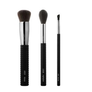 Perfect for covering all the basics with this cute set! This 3-piece set comes with a dense, domed brush for foundation or contour, a powder brush for highlighter or blush, and a small dense angled brush for eyeliner or eyebrows.
