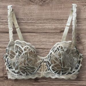 Lejaby Savanna Ecru Embroidery Balconette Underwire Couture Bra France Size 34D