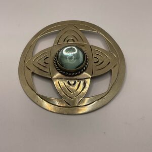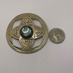 Big alpaca brooch medallion made in Mexico metal is alpaca and big glass stone cute check the pictures for details