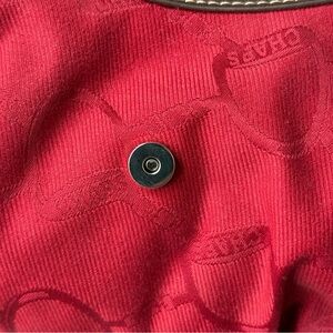 NWT Chaps red canvas shoulder bag with brown faux leather trim and silver-tone hardware. In new conditions, beautiful style.