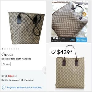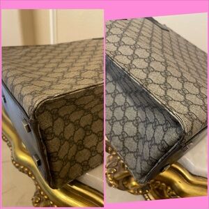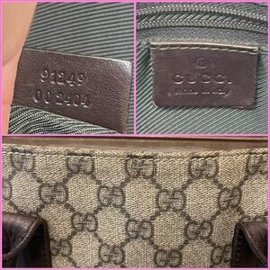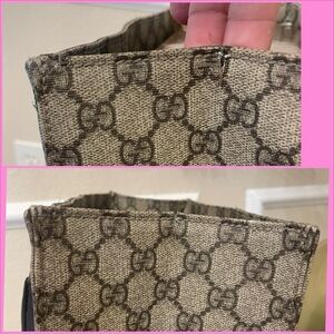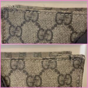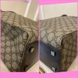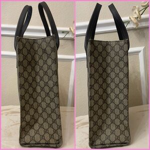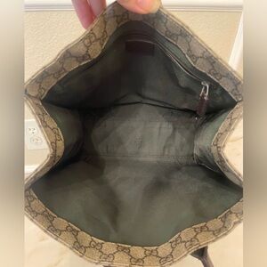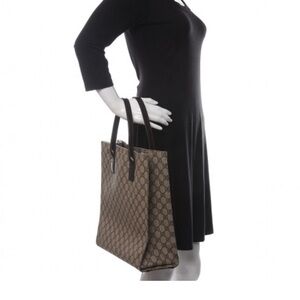 Elegant Gucci tote with iconic monogram pattern. Features sturdy handles. Perfect for everyday use.