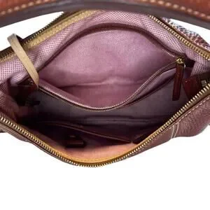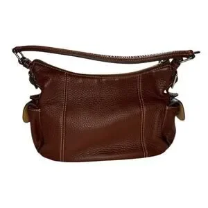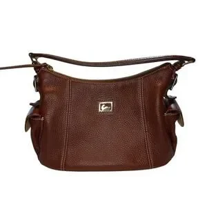 Dooney & Bourke Women Brown Peeble Leather Zip Closure Clutch Shoulder Hobo Bag