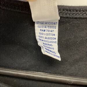 This is a ladies' size small t-shirt. It was made in Vietnam of 100% cotton. It has a of copyright MJ's. The sparkles help you forget how awful the Saints are.