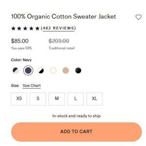 NWOT QUINCE Organic Cotton Sweater Jacket Navy Gold XS
