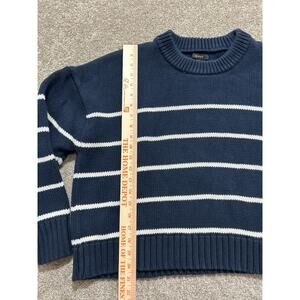 Quince Women’s L 100% Organic Cotton Striped Crew Sweater Navy/White