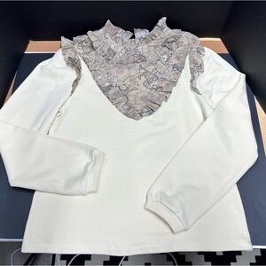 NWT Anthropologie Letmbe Isabelle Cream Whimsical Ruffled Pullover Top Size Medium Retail for $148