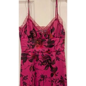 Adorn yourself in vibrant romance with this Urban Outfitters slip dress. Its playful pink canvas bursts with a dramatic floral print, capturing the essence of a secret garden in bloom. Delicate lace trim graces the neckline and straps, adding a whisper of vintage allure and feminine charm that feels so special against your skin. This dress is perfect for a romantic date night or a chic brunch with friends.