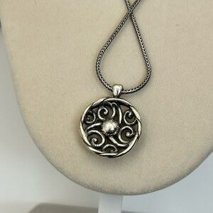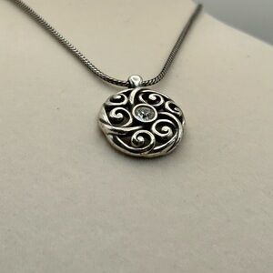 Brighton Round Scroll Necklace Single Swarovski Crystal Retired 17" & Cloth Bag