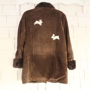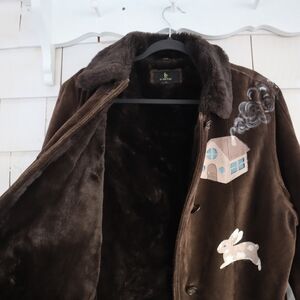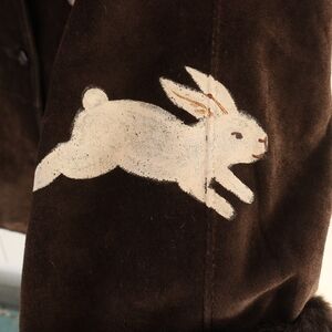 Hand Painted Vintage Suede Jacket With Faux Fur Inside Bunnies Rabbits M
