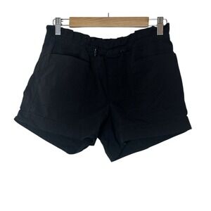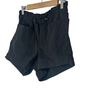 Athleta Trekkie Paper Bag Shorts Womens Size 4 Black Zip Pockets Outdoor Workout