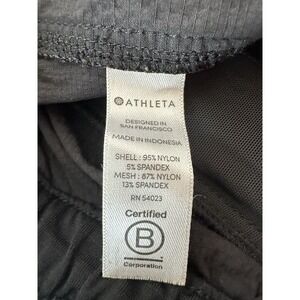 The Athleta Trekkie Paper Bag Shorts in women's size 4 are a versatile and stylish option for outdoor workouts or casual wear. Made of lightweight and breathable nylon and spandex fabric, these black shorts feature a drawstring closure and zip pockets for added convenience. The mid-rise waist and cuffed hem provide a comfortable fit, while the 3.5-inch inseam offers both style and functionality. Ideal for activities like walking, hiking, or simply lounging at the beach, these shorts are a great addition to your active wardrobe.
