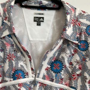 Adidas Climacool Women’s Golf Shirt Red, White and Blue Floral Print Size Medium