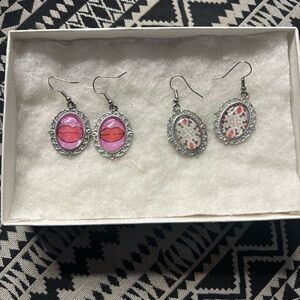 Add a touch of elegance with this stunning set of silver and pink earrings. Perfect for any occasion. Both earrings sold together and both handmade