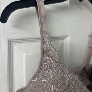 Experience comfort and style with this elegant lace underwire bra. The intricate lace detailing adds a touch of sophistication, while the taupe color offers a versatile and timeless look. Brand new with tags. Comes from a smoke free home.