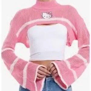 Hello Kitty Stripe Bolero Crop Shrug Hot Topic Women Pink and White SM