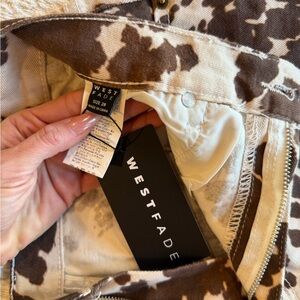 Make a statement with these stylish cow print jean shorts. Perfect for a unique and trendy look.