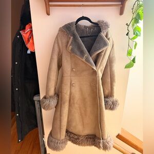 Luxurious Tan Teddy Jacket with Shearling Trim