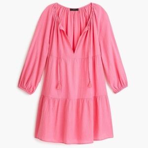 J. Crew | Tiered Beach Tunic Crinkle Cotton Swim Coverup Hibiscus Pink Medium
