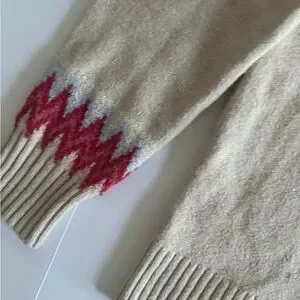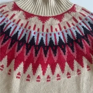 Warm beige sweater with vibrant red and blue design. Ideal for winter wear. NWT Caslon sweater 🤍