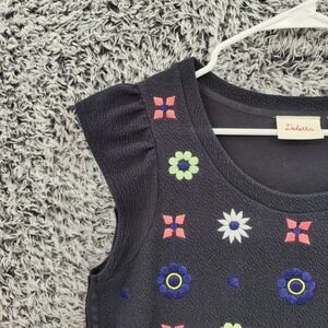 Keywords: Deletta, embroidered, floral, cap sleeve, zipper side, black top, women's fashion, casual, boho, feminine, unique, designer