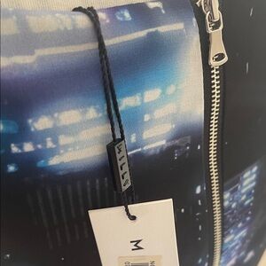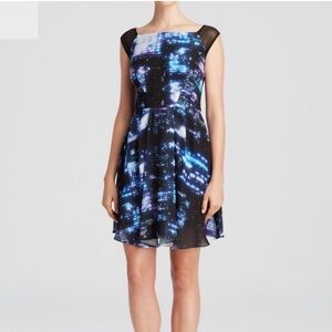 This gorgeous cocktail dress is the perfect mix of flirty and classy! Taylor Swift “Welcome to New York” vibes, anyone? The mesh cap sleeves and floaty skirt are a fun touch. The modern city print fabric is made in Italy and the dress itself is made in USA!
