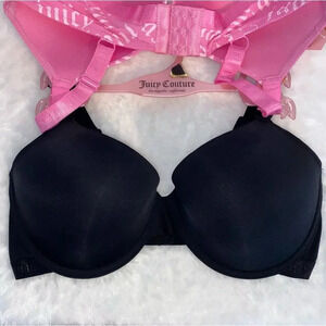 Juicy Couture Sexy Pink Logo & Solid Black Push-up Bra 2 Piece Set Size 38D New