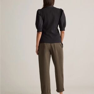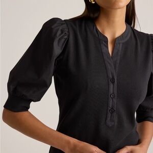 Quince Mixed Media Puff Sleeve Women's Top in Black Size XL