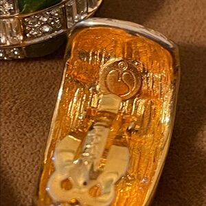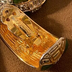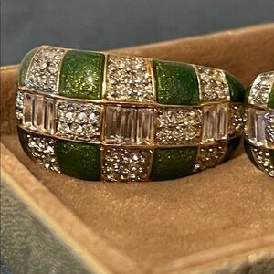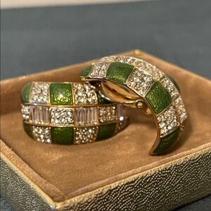 *RARE* Vintage St. John Metallic Green Enamel & Crystal Clip-on Earrings
