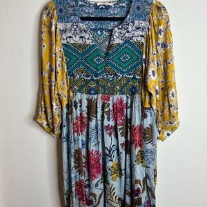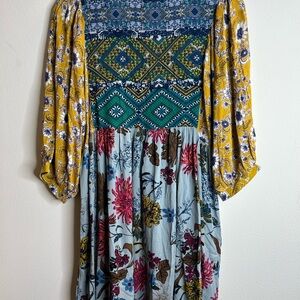 Magnolia Boutique S Floral Patterned Dress with Mixed Colors Boho Hippie Peasant