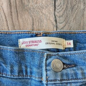 Stylish blue denim shorts. Features distressed details. Classic Levi's design. These are from the Levi Strauss Signature line.