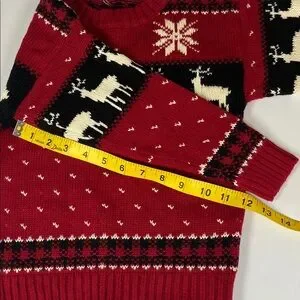 Stay cozy and stylish with this red sweater featuring a charming reindeer pattern. Perfect for adding a festive touch to your wardrobe.