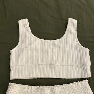 Cozy ribbed pajama set. Includes tank top and shorts. Soft and comfortable fabric. Worn once. Super soft. Smoke free home.