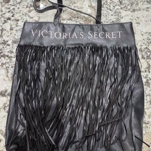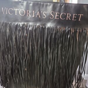 Stylish black tote bag with fringe detail. Features Victoria's Secret branding. new no tags