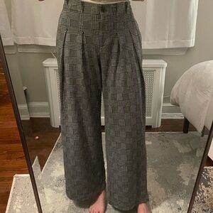 Chic wide leg pants. Classic plaid pattern. Perfect for any occasion.
