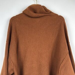 Free People Softly Structured Knit Tunic Turtleneck Sweater in Tobacco Size S