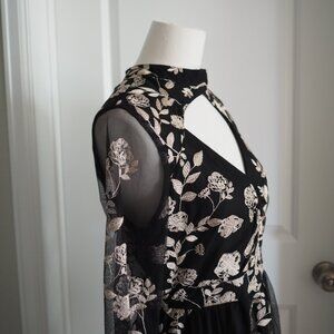 Altar'd State Formal Floral Embroidered Dress Sheer Cutout Neckline, Size Large