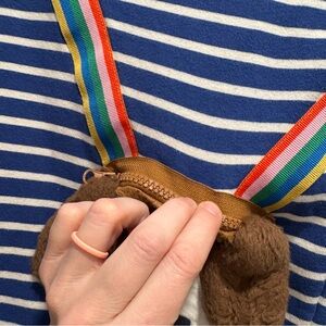 A zipped trompe l'oeil handbag featuring a floppy-eared, furry pup is actually a fun pocket attached to this striped long-sleeve T-shirt.