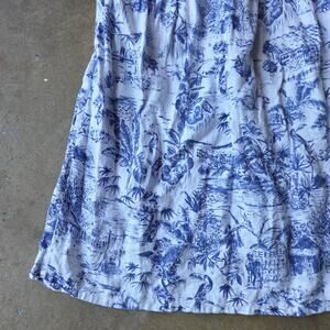 Joie Linen Midi Skirt Size L Blue White Print Tropical Island Print Toile Tiered