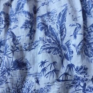 Joie 100% linen tiered midi skirt with pockets in blue and white island tropical print, size large. In gently preowned condition, no flaws noted.