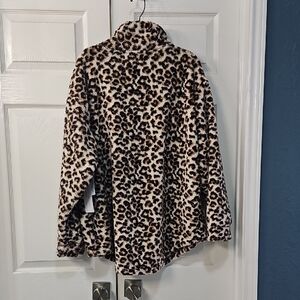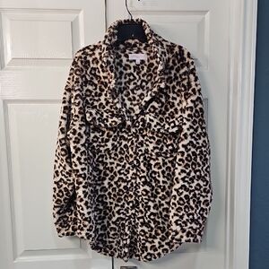 New Adrienne Vittadini Sport Leopard Print Teddy Exotic Jacket Large