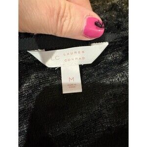 LC Lauren Conrad Cardigan Womens Size M Black Shaggy Open Front