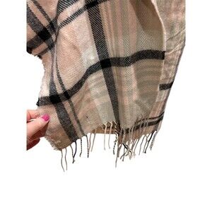 Simply Southern Shawl Wrap Womens Pink Cream Black Plaid Fringe Soft
