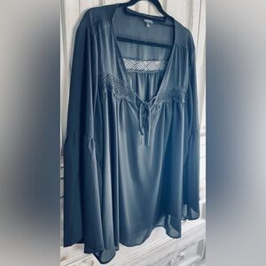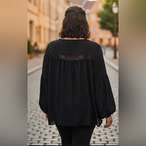 Torrid pheasant style black blouse w/lace trim detail size 3X
