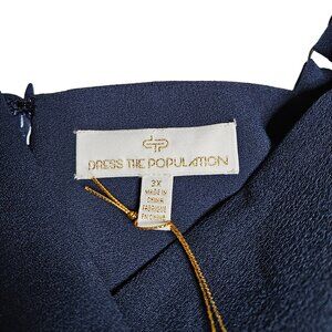Dress the Population Women's Owen Stretch Crepe, A-Line, Faux Wrap, V-Neck Dress, Midnight Blue, 3X, NWT
