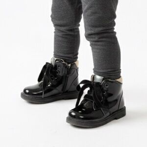 Geox Breathable Girls Black Patent Leather Boots With Velvet Laces - Sz 6 1/2