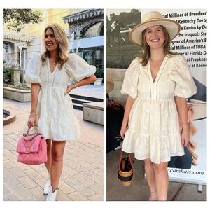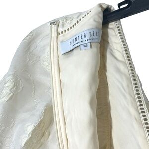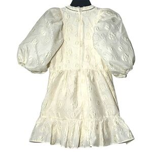 Hunter Bell Gaille Mini Dress Jacquard Ivory Flowers size XS Puff Sleeve Bridal