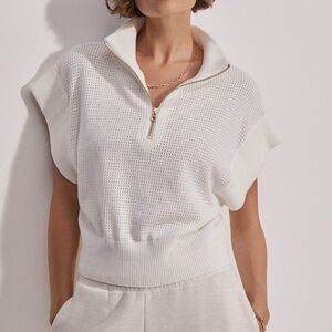 Varley white Fulton cropped half zip knit top. The material is 100% cotton. It is in great condition and a size x-small.