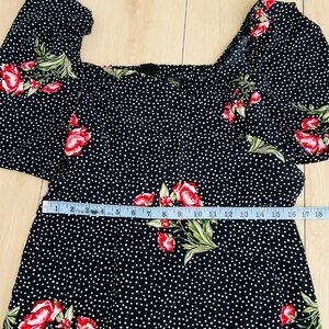 Pre-owned, gently used Suzanne Betro Floral Polka Dot Wrap Dress size XL. No holes, stains, snags, or flaws. This is a lovely mid-weight dress, it's fully lined, gives an airy flowy, look with an ultra feminine 1950s pin-up style shape.